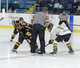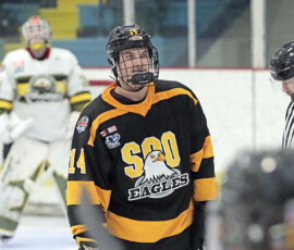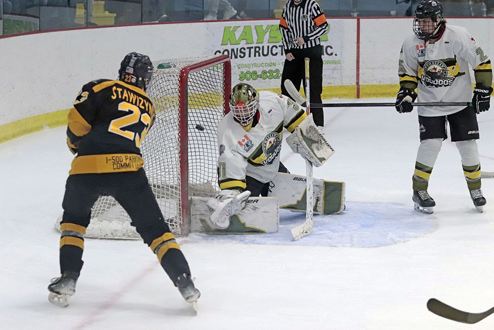 The Eagles struck first as a puck put through the slot in the Soo end allowed Samuel Gold to race in on a breakaway, where he cut to his left and elevated a backhand over the pad of Voodoos’ netminder Derrick Champagne, just over 12 minutes in.