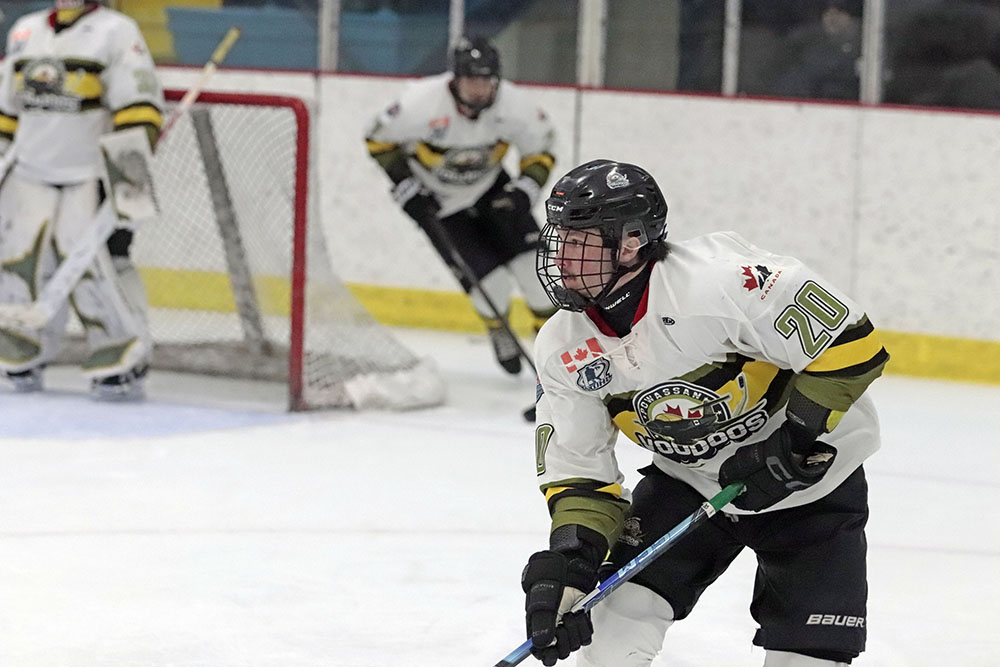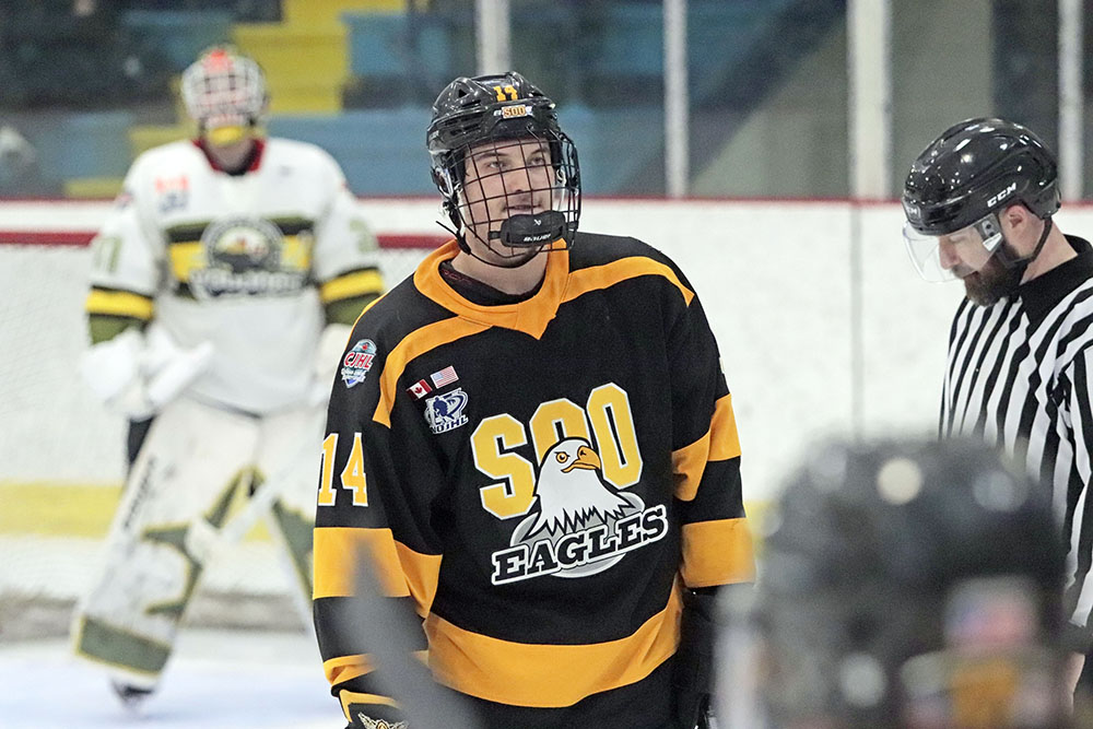 SAULT STE. MARIE, Mich. – An Alex Povorozniuk goal, 32 seconds into double overtime, gave the Soo Eagles a 4-3 victory over the Powassan Voodoos Tuesday evening in Game 3 of their Northern Ontario Junior Hockey League quarter-final at Pullar Stadium.