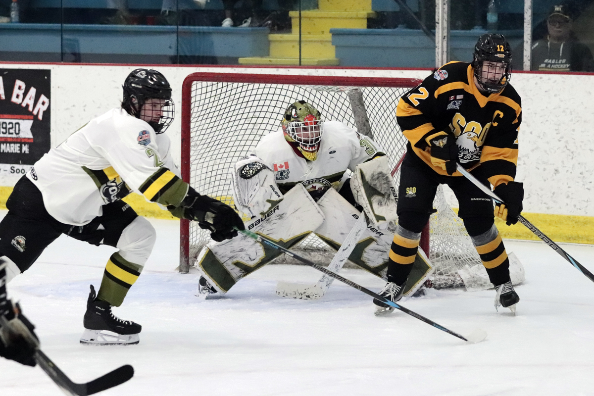 The Soo came back to go back in front, early in the third, thanks to Jacob Peterson tipping in a play put to the net from Anden Marceau.