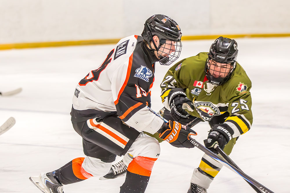 Striking from a sharp angle in the corner, Powassan’s Heath Bradley fired a low shot to the target that eluded Hearst starter William Stonehouse, early into the contest, to give the guests the lead.