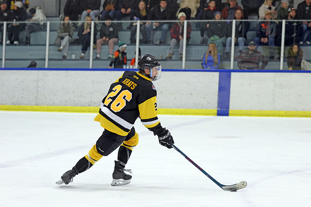 Action in the third period saw Drigo complete a hat trick at 4:21 as he opted to shoot from the left side on a two-on-one and made no mistake from the left circle in eluding Lyon.