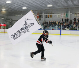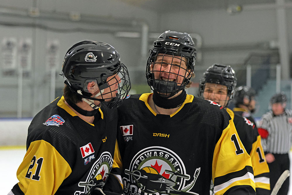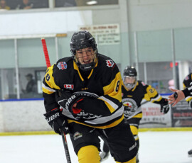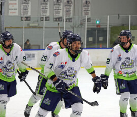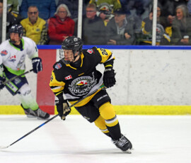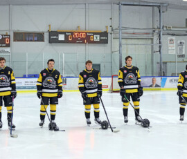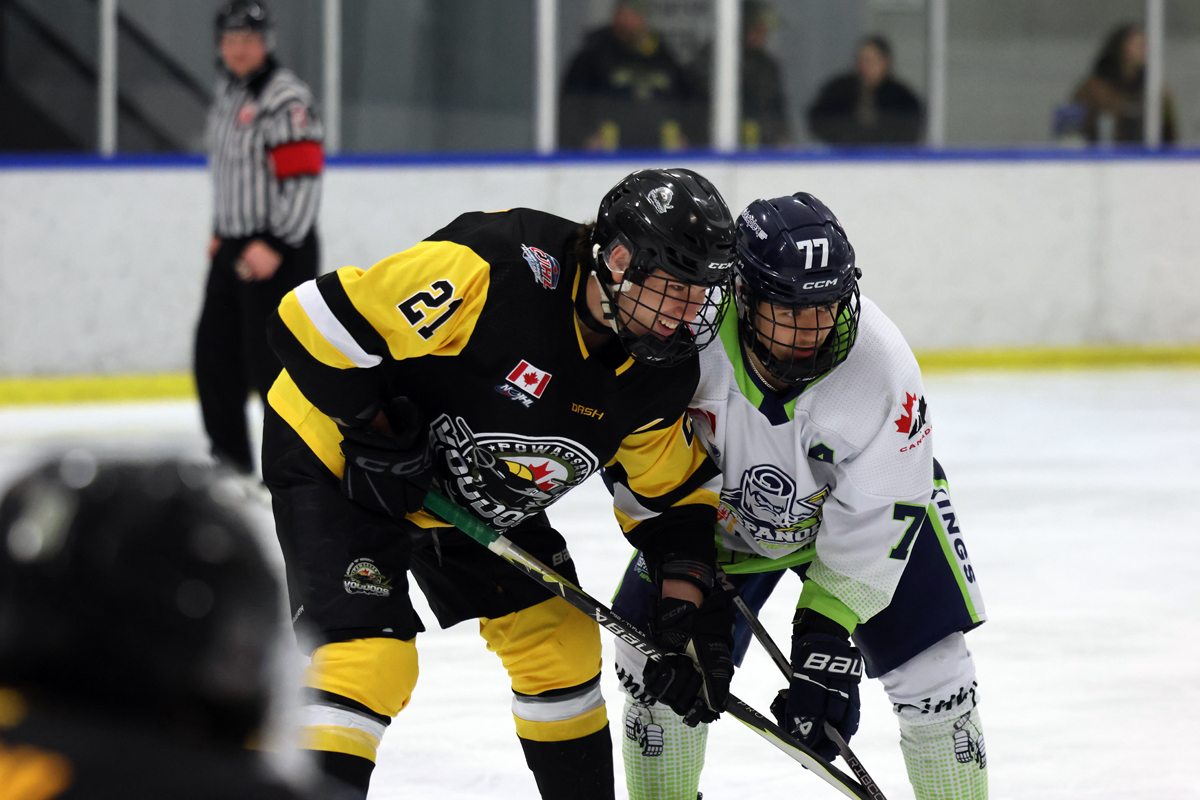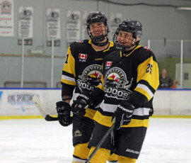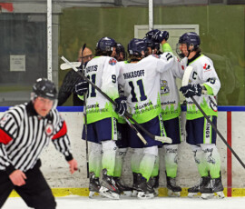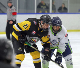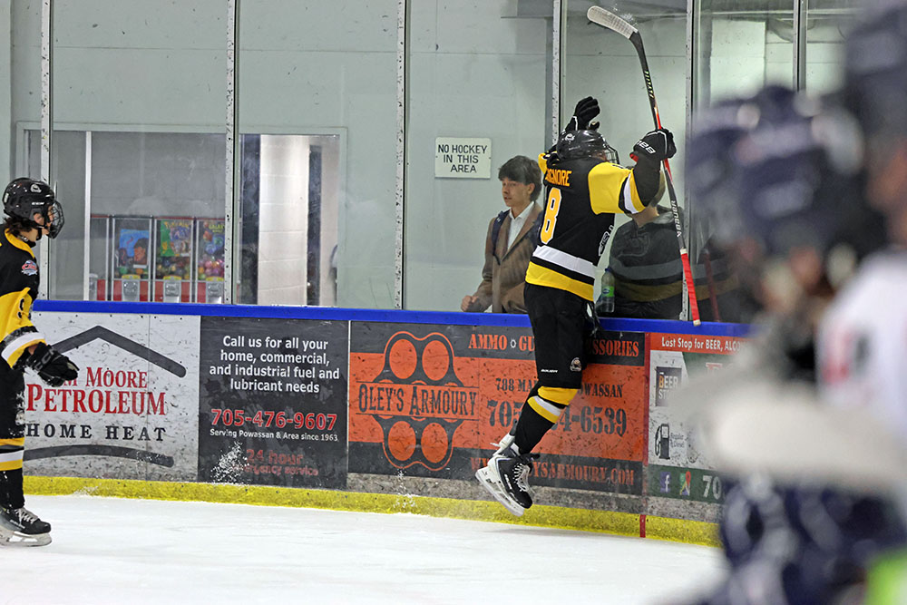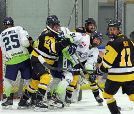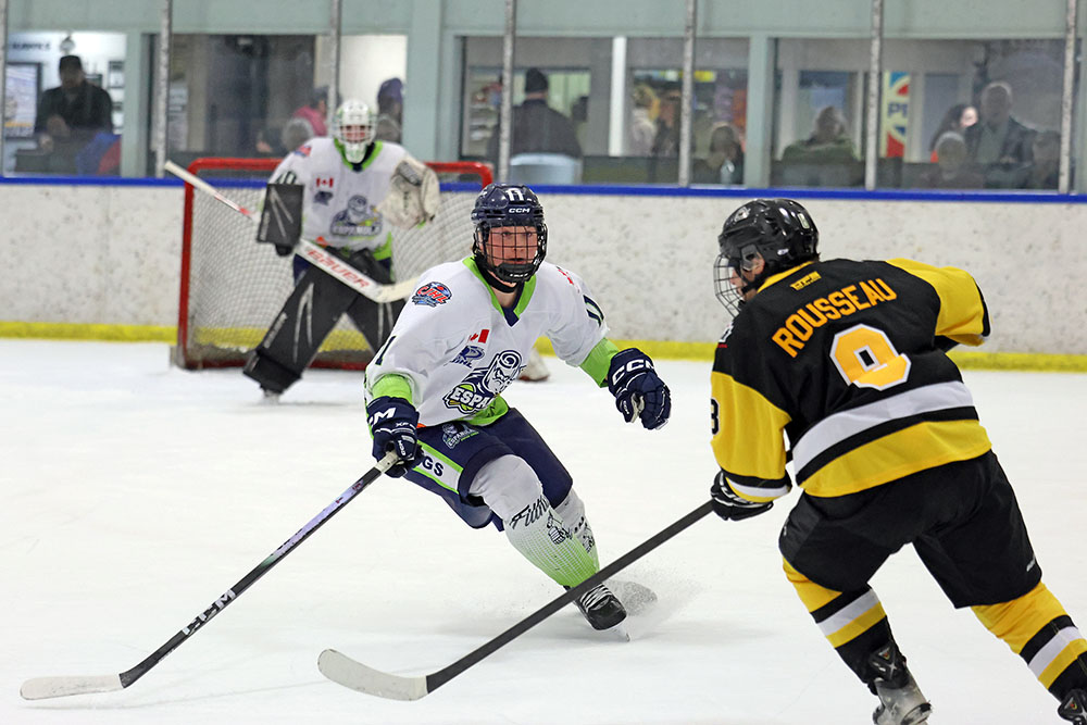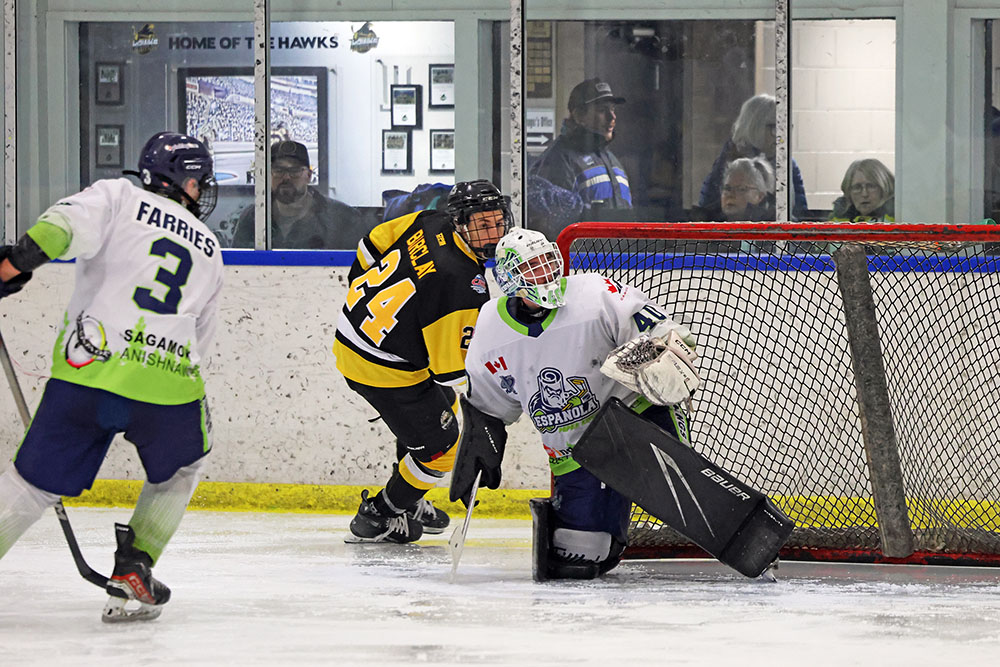 Powassan pulled even at 15:10 thanks to Parker Bonsignore, who took a pass across from Dylan Rousselle and whipped it past Espanola’s Logan Vale.