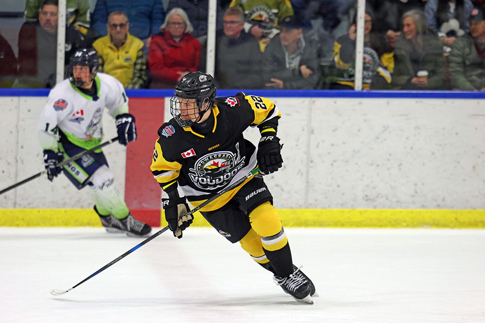 Continuing to trade tallies in the middle stanza, Braeden Begley converted on a Voodoos’ power play at 5:52 after taking a sharp set-up from Owen Head and quickly snapping it past an outstretched Vale.