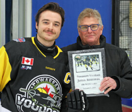 POWASSAN, Ont. – A Benjamin Coupal marker nearly seven minutes into the third period proved to be the game-winner as the Powassan Voodoos went on to defeat the Espanola Paper Kings 5-3 in a back-and-forth Northern Ontario Junior Hockey League meeting Friday at the Powassan Sportsplex.