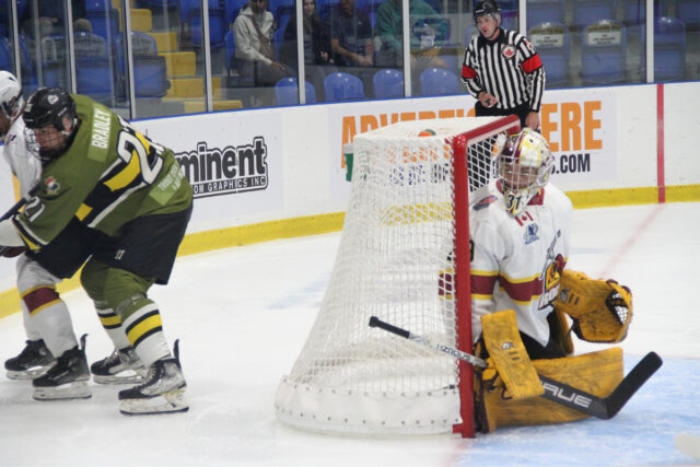 Voodoos goaltender Dean Spry suffered the loss, making 30 saves.