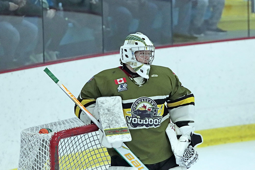 Running a point streak to seven, Voodoos first-year forward Jax Pereira took a cross-ice feed from Marcus Krats and zipped it into the open side on Sault Ste. Marie starter Jace Knoerle during a man advantage to knot the affair.